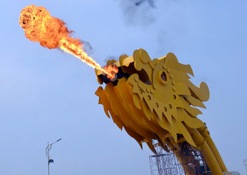 | | Cầu Rồng có kiến trúc độc đáo nhưng việc thi công chậm hơn so với dự kiến v́ đ̣i hỏi kỹ thuật khó, tỷ mỉ. |  | | Đầu rồng quay ra biển, cầu được thiết kế vượt qua đường Trần Hưng Đạo để nối trung tâm thành phố với các khu du lịch ven biển Đông. Theo kế hoạch, rồng sắt sẽ phun nước vào ban ngày, phun lửa vào ban đêm dịp cuối tuần và lễ hội. |  | | Mặt đường đang được trải nhựa bằng công nghệ hiện đại. |  | | Những chiếc vảy lớn được gắn trên thân tạo thêm vẻ uyển chuyển cho rồng. |  | | Phía dưới đầu rồng được lát gạch đỏ... |  | | ... c̣n khu vực thân nơi có các sợi cáp chịu lực được trải thép phủ sơn trắng. |  | | Mỗi chiều đường trên cầu Rồng sẽ có 3 làn xe chạy. |  | | Vỉa hè dành cho người đi bộ rộng 2,5 mét được lát gạch và làm lan can kiên cố bằng thép tạo h́nh uốn lượn. |  | | Tĩnh không thông thuyền 7 mét, đảm bảo cho tàu thuyền của ngư dân có thể qua cầu. Đường dẫn lên cầu dành cho người đi bộ được lắp kính an toàn. |  | | Các công nhân hoàn thiện những phần việc cuối cùng để phục vụ ngày khánh thành. |  | | Sau hơn 3 năm thi công, dự kiến cây cầu dài hơn 660 mét, được đầu tư khoảng 1.700 tỷ đồng sẽ khánh thành ngày 29/3, dịp kỷ niệm 38 năm giải phóng Đà Nẵng. | cnn