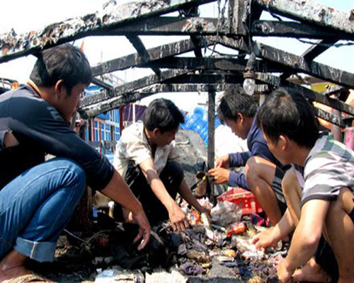 Nóc cabin tàu QNg-96382-TS của ngư dân tỉnh Quảng Ngãi bị Trung Quốc bắn cháy.