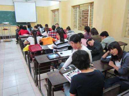 Có mặt ở lớp đúng 8 giờ như lịch học ghi trong thời khóa biểu, thế nhưng đập vào mắt tôi là quang cảnh vắng tanh chỉ lác đác một số “sinh viên” lớn tuổi. 30 phút sau không khí lớp học mới trở nên nhộn nhịp hơn.