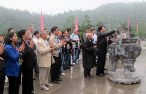 Kiều bào dâng hương tại Đền thờ Chủ tịch Hồ Chí Minh tại Khu di tích Pác Bó. Ảnh: Phương Linh