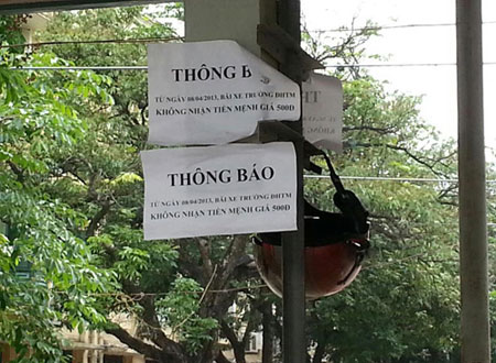 Bãi gửi xe đại học Thương mại tẩy chay tiền 500 đồng
