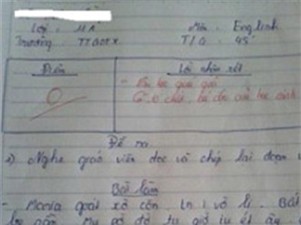 Bài kiểm tra tiếng Anh 0 điểm và lời phê "bá đạo"