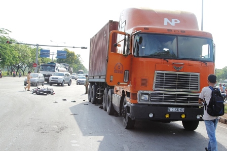 Hai thanh niên thoát chết thần kỳ dưới gầm container
