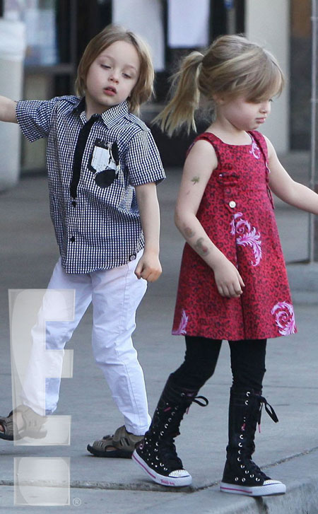 Cặp sinh đôi của Jolie sành điệu đi chơi trên phố