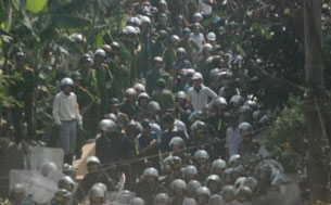 Công an và cảnh sát cơ động dày đặc trong ngày cưỡng chế đất ở Văn giang cách đây 1 năm./Citizen photo