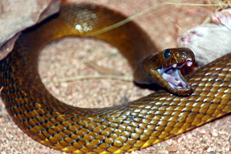 Rắn độc Taipan sống chủ yếu ở Australia và được coi là loài rắn đáng sợ nhất thế giới bởi độc tố của nó còn khủng khiếp hơn cả rắn hổ mang bành đến 300 lần.