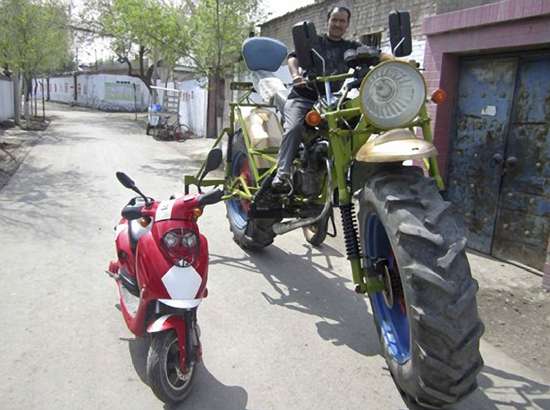 Tự chế môtô khổng lồ từ vật liệu bãi rác