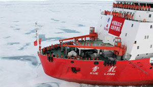 Tàu phá băng Xue Long (Rồng Tuyết) của Trung Quốc hoạt động ở Bắc cực.