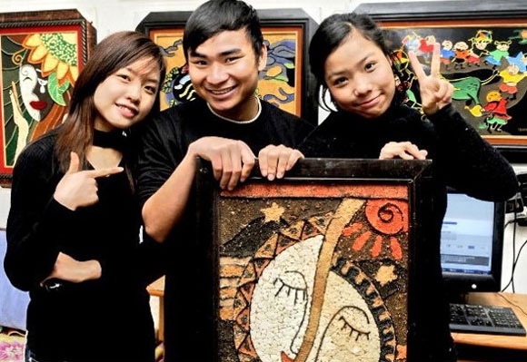 Chủ đề, kích thước của tranh rất đa dạng phù hợp cho nhiều không gian sống khác nhau. Chất liệu làm hoàn toàn từ tự nhiên đă thu hút được rất nhiều khách hàng cả trong và ngoài nước, giúp Quân thu về số tiền hàng trăm triệu đồng.
