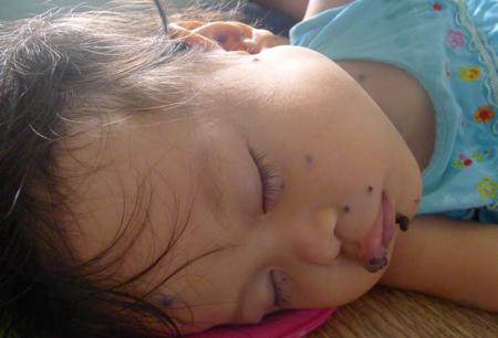 Sinh ra em đã mang trên mình hàng trăm cục u máu khiến cả cơ thể trở nên “lồi”, “lõm” không bình thường. Đã từng 4 lần làm phẫu thuật, tuy nhiên tình trạng bệnh của em vẫn hết sức nguy kịch bởi bố mẹ đã kiệt quệ không còn đường xoay sở.