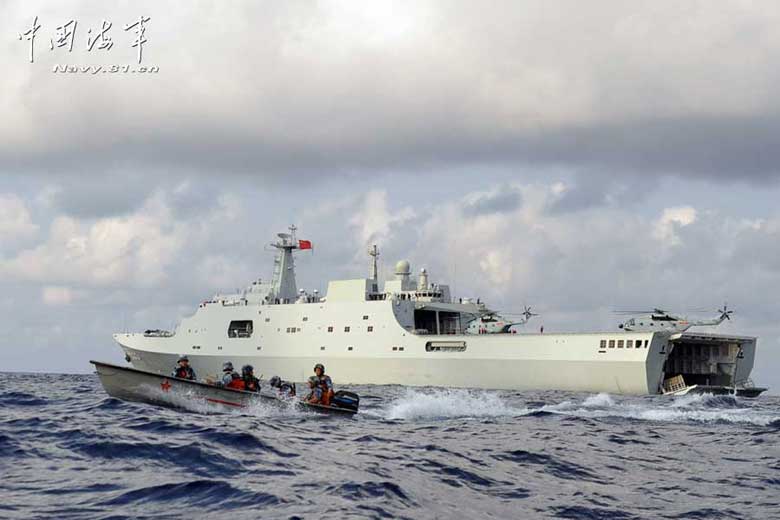 Tàu chiến đổ bộ Tỉnh Cương Sơn hiện đại nhất hải quân Trung Quốc tập trận trái phép ở Biển Đông - Trường Sa khiến khu vực đặc biệt quan ngại