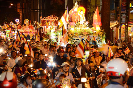 Hàng vạn người chiêm bái đoàn diễu hành xe hoa mừng Phật đản