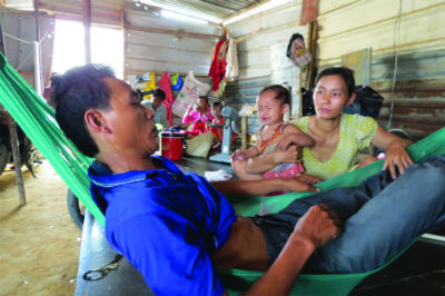 Trước đó, cả hai vợ chồng đều bị nhà thầu đuổi khỏi khu lán trại từng ở để phục vụ công trình. Trong căn chòi lá ẩm thấp, hôi hám cùng những tiếng khóc ỉ oi của mấy đứa trẻ, anh Phong đang nằm rên rỉ bởi 2 vết thương hành hạ.