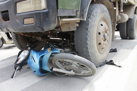 Dừng đèn đỏ, hai xe máy bị xe tải cuốn vào gầm