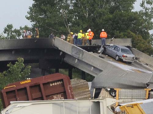 Tàu hỏa tông nhau gây sập cầu ở Mỹ