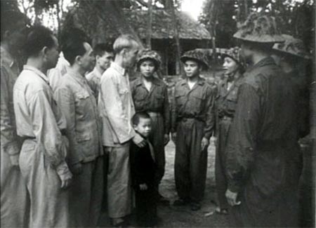 Bác Hồ trò chuyện với 6 chiến sĩ Điện Biên Phủ (chú bé trong bức ảnh nay là Thiếu tướng Hồ Sĩ Hậu.....Môn)