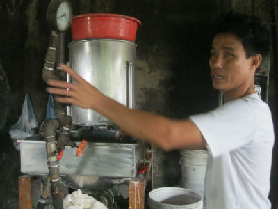 Do đó anh bàn với vợ vay mượn thêm tiền sắm các loại máy hiện đại nhằm cải thiện “công nghệ”. Vợ chồng mạnh dạn vay ngân hàng, thậm chí vay cả bên ngoài với lăi suất cao để đầu tư làm ăn, lúc đầu vay được 50 triệu mua một máy liên hoàn, sau đó vay tiền mua tiếp máy xay bột và máy vắt bột khô trị giá 26 triệu đồng.
