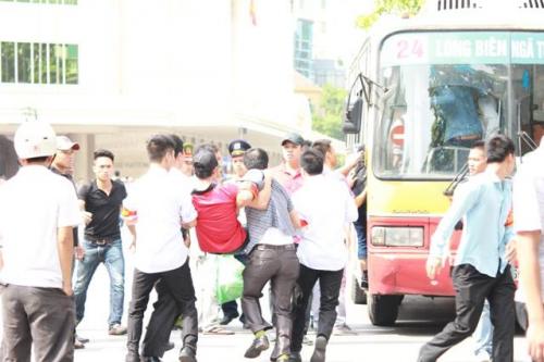 Bắt người biểu tình (ảnh trên blog của chị Thùy Linh)