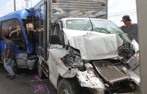 Tai nạn liên hoàn, 6 ô tô dính chặt nhau