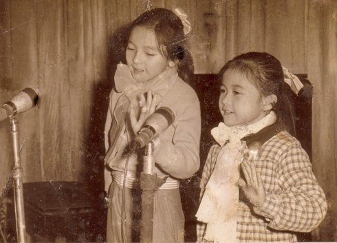 | Ca sĩ Ái Vân (trái) bên em gái Ái Xuân thời bé. |