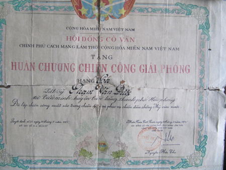 Huân chương chiến công giải phóng hạng ba của ông Được