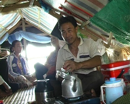 | Trong căn lều tạm của ḿnh, ông Nguyễn Văn Vương bày tỏ mong muốn có hộ khẩu để ổn định cuộc sống. |
