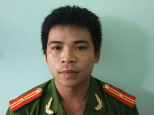 | Đối tượng Tiến đã lừa tình – tiền của hàng loạt thiếu nữ với bộ cảnh phục. |