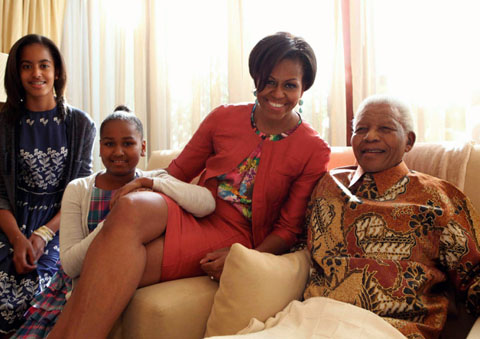 Nelson Mandela bên phu nhân của Tổng thống Mỹ, Barack Obama