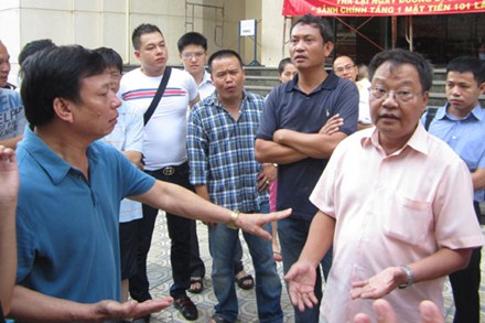 GĐ Cty CP XD số 5 Hà Nội – Cao Tiến Đạt khẳng định: "Đây là tài sản của tôi nên tôi có quyền sử dụng".[h=2]Hà Nội:[/h] 8 giờ sáng nay , đại diện gần 100 hộ dân trú tại chung cư 101 Láng Hạ, Đống Đa, Hà Nội đã căng biểu ngữ phản đối việc chủ đầu tư là Cty CP xây dựng số 5 Hà Nội bịt lối đi chính của toà nhà, khiến hơn một tháng nay họ phải đi lại qua cửa lách thoát hiểm rất khó khăn và bất tiện.