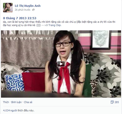Bà Tưng lại gây sốc bằng... clip đeo khăn quàng đỏ, hát nhạc thiếu nhi