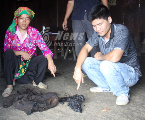 Hỏi chuyện về chiếc chân khô của chồng, chị Sùng Thị Dính bảo đúng là có cái chân khô của chồng treo trên gác bếp, nhưng phải hỏi ý kiến chồng thì mới lấy xuống xem được.