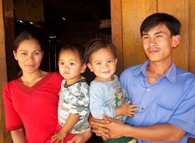 Y tá Y Ngum bế bé A Công Sơn cùng chồng con.