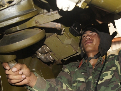 Sau khẩu lệnh đanh gọn: “Lên xe chiến đấu” của trưởng xe, các chiến sĩ ào lên những chiếc tăng T54, nhanh chóng ngồi vào các vị trí lái xe, pháo thủ, nạp đạn, súng 12,7 ly... Đây là một trong nhiều phương án luyện tập của những người lính xe tăng ở Quân khu 5.