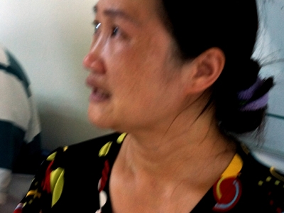 Chị Chu Thị Nên kể với phóng viên về câu chuyện của chồng trong nước mắt.