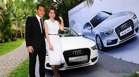 Cặp đôi đình đám Thủy Tiên - Công Vinh đầu năm 2012 cũng chi tiền sắm mẫu xe sành điệu Audi A5 Sportback trị giá gần 2,3 tỷ đồng. Cặp đôi quyết định sắm xe khi làm đại sứ thương hiệu cho dòng xe A5 Sportback của Audi.