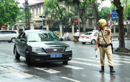 Xử lư gần 50 xe biển xanh vi phạm tại Hà Nội