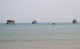 Ba thuyền đánh cá của gia đ́nh lăo ngư Trương Văn Trọng ra mở biển đầu năm/RFA files |