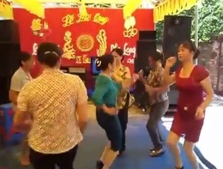 Gần chục chị em U50 nhảy nhạc sàn bốc lửa trong đám cưới quê