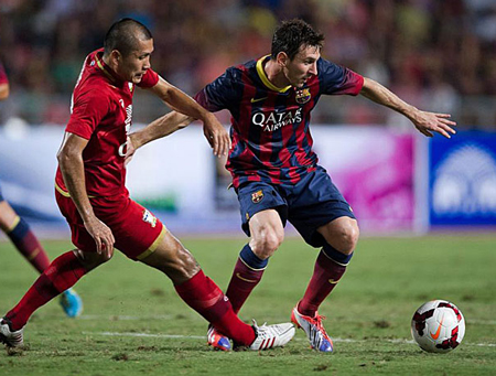 Thái Lan gỡ lại được một bàn nhờ công tiền đạo Teerasil Dangda. Đây là một trận đấu mà người Thái Lan đã chơi đầy cố gắng, nhưng khoảng cách quá lớn về đẳng cấp khiến họ không theo kịp những pha đan lát đến chóng mặt của CLB xứ Catalan.
