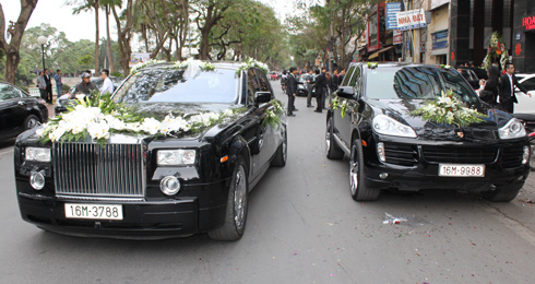 Vào năm 2010, giới đại gia Hải Phòng cũng từng khiến dư luận một phen xôn xao khi "trình diễn" bộ sưu tập xe sang gồm Rolls-Royce Phantom, Mercedes CLS, Porsche Cayenne, Porsche Panamera trong đám cưới của chú rể tên H