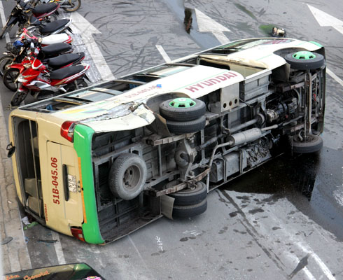 Bám xe đang xuống dốc, 5 học sinh thương vong