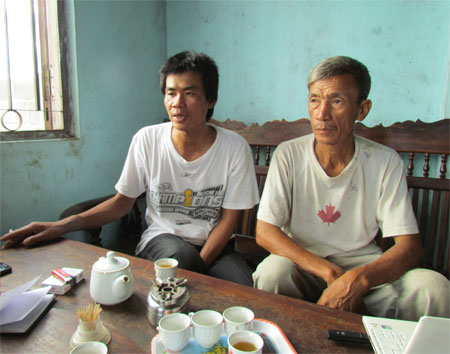 Anh Đ́nh Anh (trái) ngồi bên cha, kể lại những tháng ngày cùng cực trên tàu cá Đài Loan