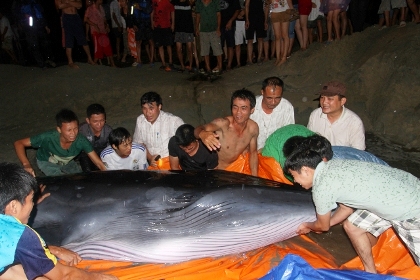 Hàng trăm người nỗ lực giải cứu “cá Ông” dài gần 8m