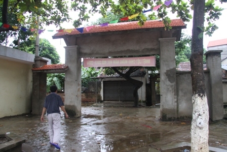 Cổng trường THCS Tân Hoa (Quốc Oai, Hà Nội) không có cánh cổng