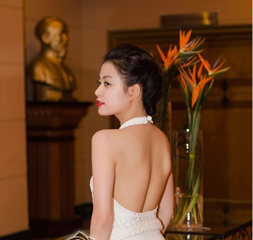 Hoàng Thùy Linh bẽn lẽn váy trắng khoe lưng trần