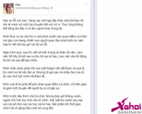 Blogger Gào xin lỗi fan vì đăng status ám chỉ "lăng mạ" Bà Tưng