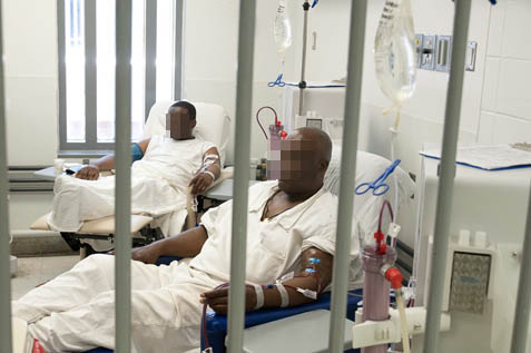 Một nhà tù khổng lồ mà nhìn qua người ta dễ nhầm tưởng là một viện dưỡng lão vì nơi này ngổn ngang khắp các phòng là những bình dưỡng khí, xe lăn, giường khênh và các dụng cụ y tế.