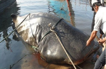Con cá mập voi mà anh Diên đánh được. Ảnh: Hà Phương.