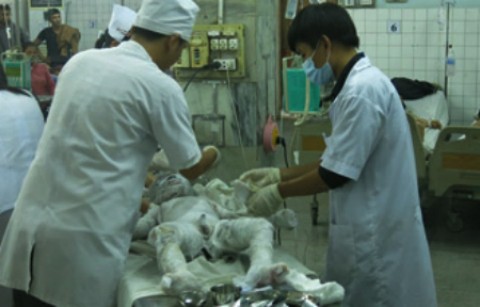 Bình gas phát nổ, 3 mẹ con bốc cháy