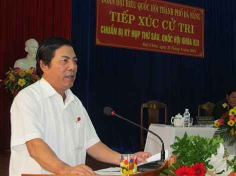 Sáng 23/9, ông Nguyễn Bá Thanh, Trưởng Ban Nội chính Trung ương cùng các vị trong đoàn đại biểu Quốc hội đơn vị TP Đà Nẵng đă có buổi tiếp xúc cử tri quận Hải Châu (Đà Nẵng) nhằm lấy ư kiến đóng góp của cử tri để chuẩn bị cho kỳ họp thứ 6 Quốc hội khoá XIII sắp diễn ra.